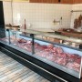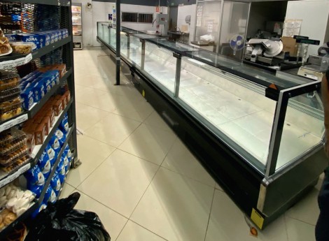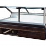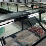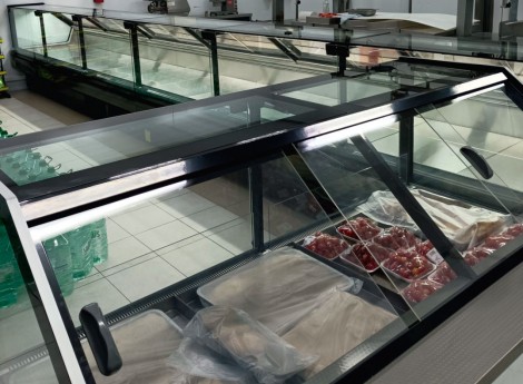 Vidrios rectos con amortiguadores, laterales en termo panel, mesa de trabajo en acero inoxidable. Paragolpe frontal inyectado en poliuretano de alta densidad, cerramiento posterior en acrílico. Bandejas en chapa blanca pre-pintada.